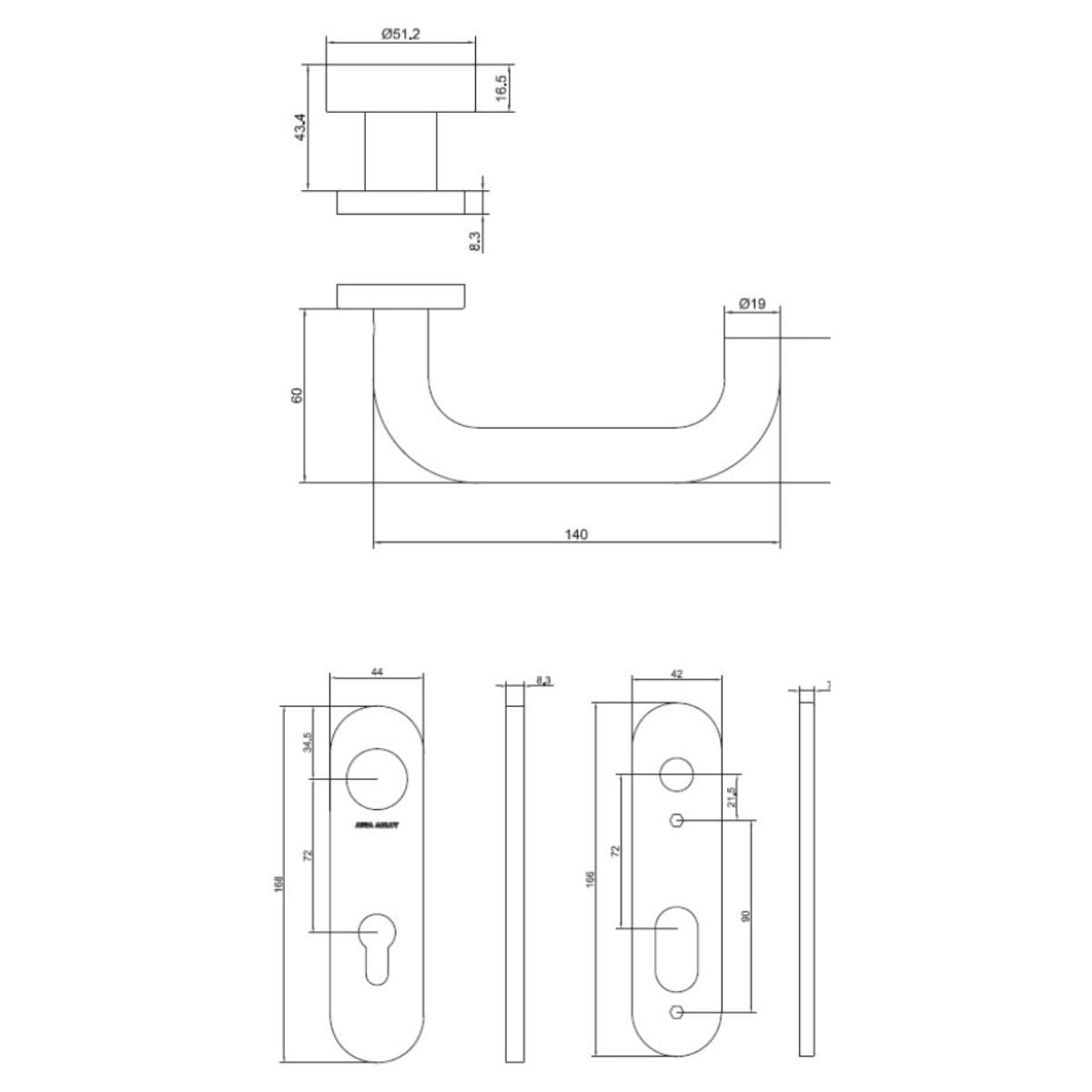 Klamka o kształcie litery „U” i średnicy 19 mm gwarantuje wygodny chwyt, natomiast płaska, okrągła gałka o średnicy 51 mm trwale zespolona z szyldem zapewnia nowoczesny wygląd i funkcjonalność.