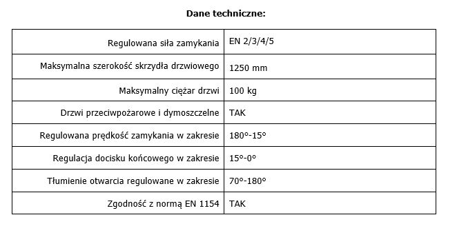- regulowana siła zamykania EN 2/3/4/5,